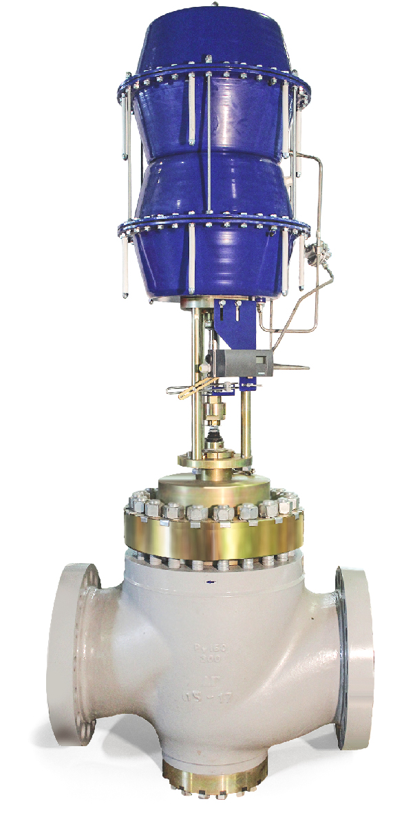 Клапан регулирующий с двойным мембранным приводом МИМ 500 усиленный. Обеспечивает максимальное усилие, сохраняет заданное положение при отсутствии питания. Укомплектован позиционером, фильтром-регулятором. Клапан применяется на специальных антишумовых и антикавитационных позициях.
