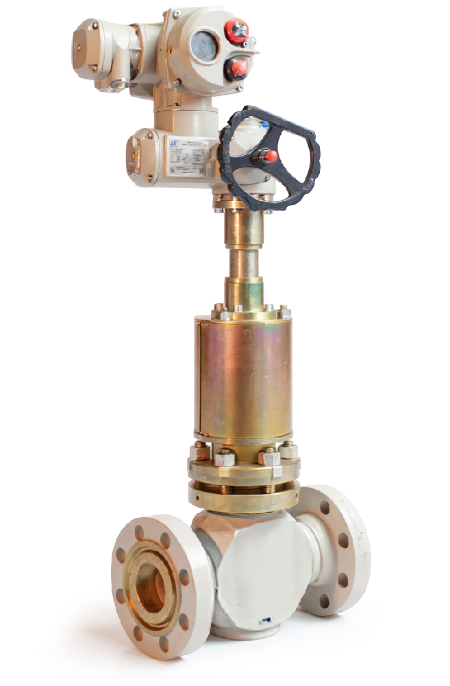 Клапан серии КМР плунжерного типа в литом корпусе с электрическим приводом Симаргл серии МЭП.