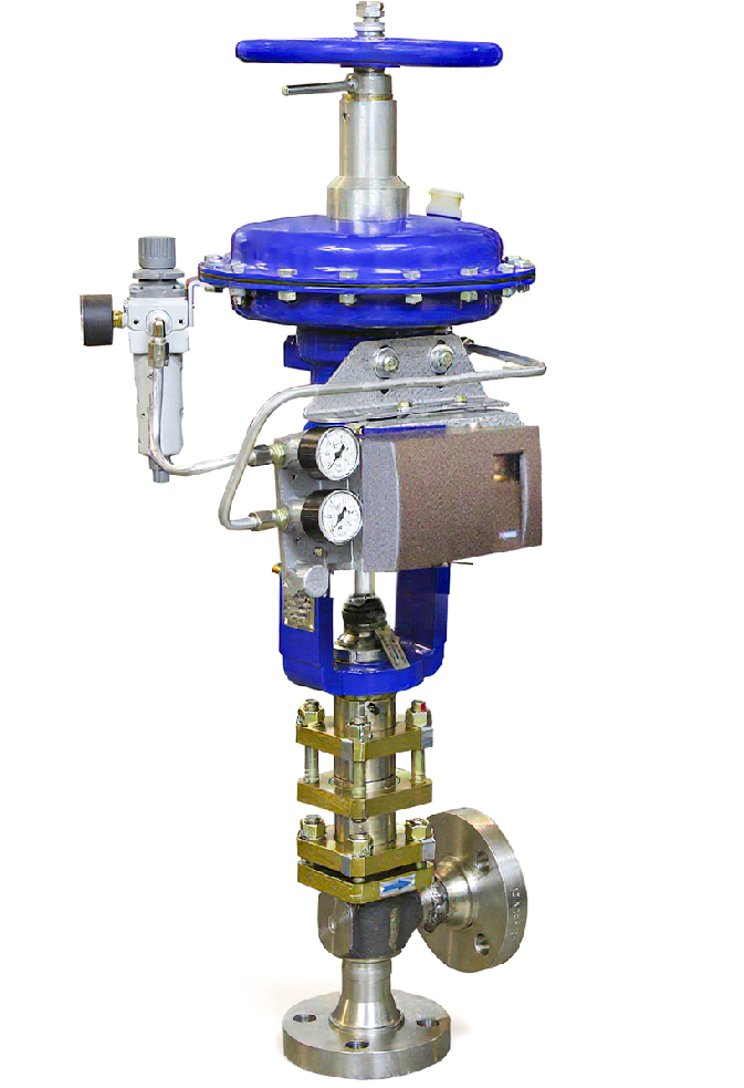 Регулирующий клапан серии КМР угловой конструкции с сильфонным уплотнением.