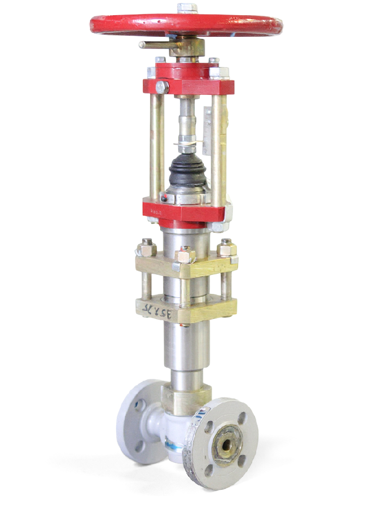 Криогенный отсечной клапан DN 25 мм плунжерный прямоходный с ручным приводом.