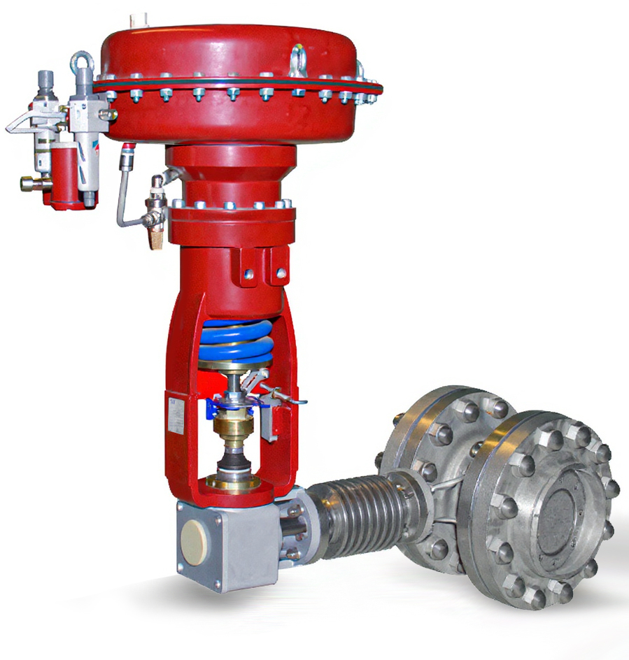Клапан отсечной высокотемпературный баттерфляй серии КБО. Трёхэксцентриковый дисковый затвор, полнопроходной. Укомплектован мембранным приводом МИМ, пневмоприводом, электромагнитным клапаном КСВ, фильтром-регулятором, клапаном быстрого сброса. Клапан быстрого сброса предназначен для ускоренного сброса воздуха из рабочей полости для увеличения скорости обратного хода штока.